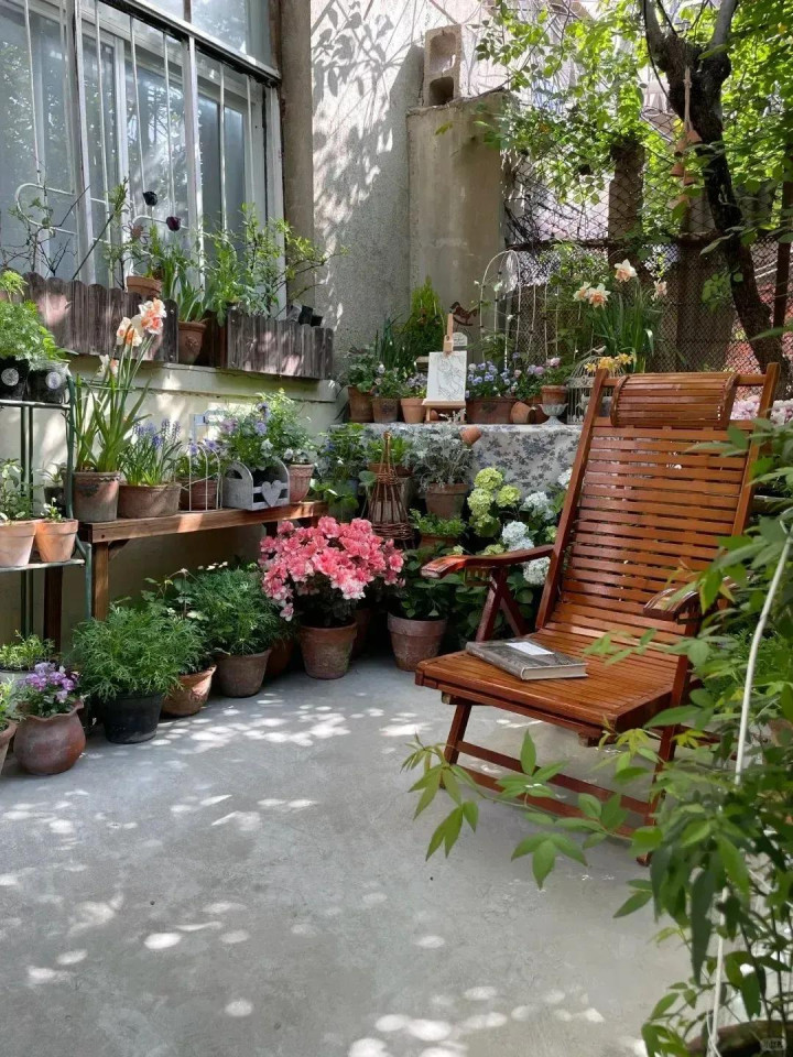 不一定非要有院子。阳台上、飘窗上也行。能放下一把椅子的地方,就是好地方。